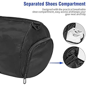 Gym Duffle Bag with Shoe Compartment Foldable Men Women Travel Fitness Holdall Barrel Sports Bags – Shoulder Strap Swimming Football Basketball Tennis Luggage Weekender Light Weight Dry Bags (Black)